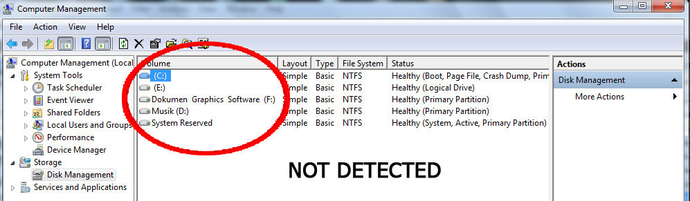 DISK MANAGEMENT: NOT DETECTED