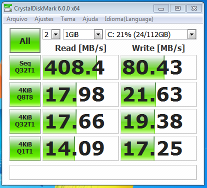 Bought a 120Gb WD Green (WDS120G2G0A), and I’m having writing speeds of ~ 70-80 MB/s.